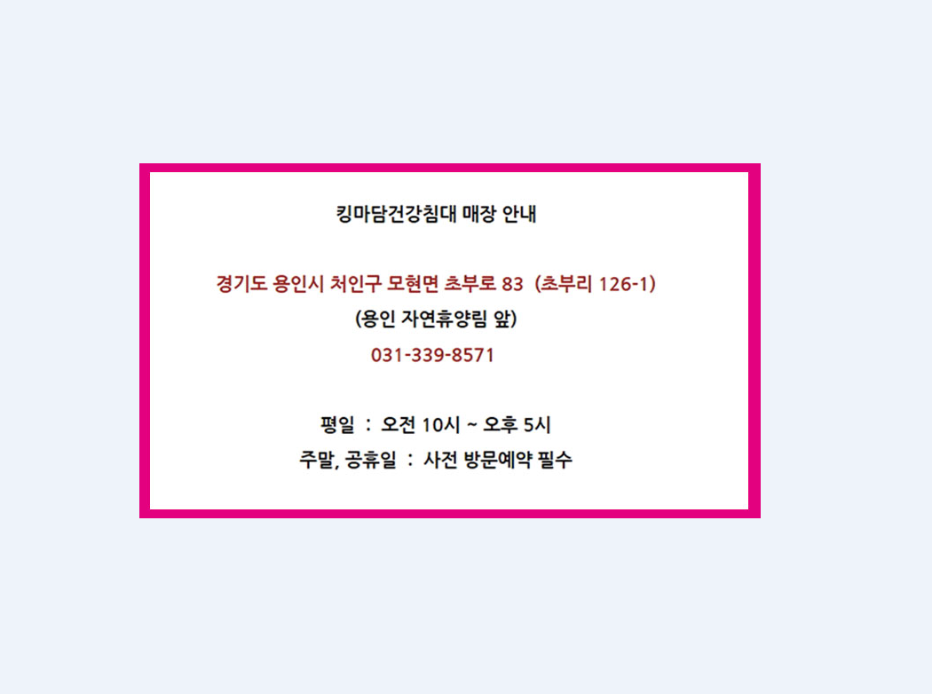 더 자세한 상담을 원하시는 고객님들께서는 킹마담건강침대로 문의주시면