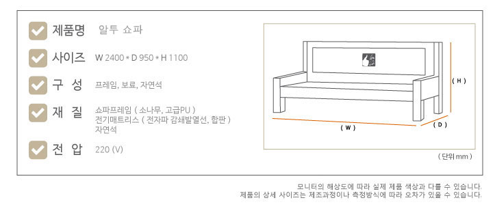 알투쇼파는 소나무원목에 인조PU가죽! 국내에서 제작하는 인증된 보료만 사용됩니다.