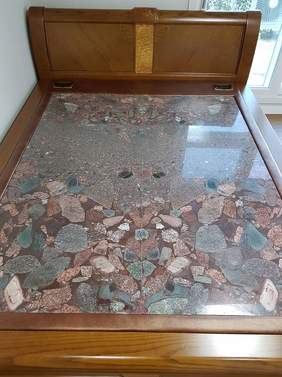 퀸사이즈에는 2장의 석재가 끼워지는데 좌우대칭이 잘되는 석재이기도 하고 자연석재라 모두 같은 모양이 아니란것도