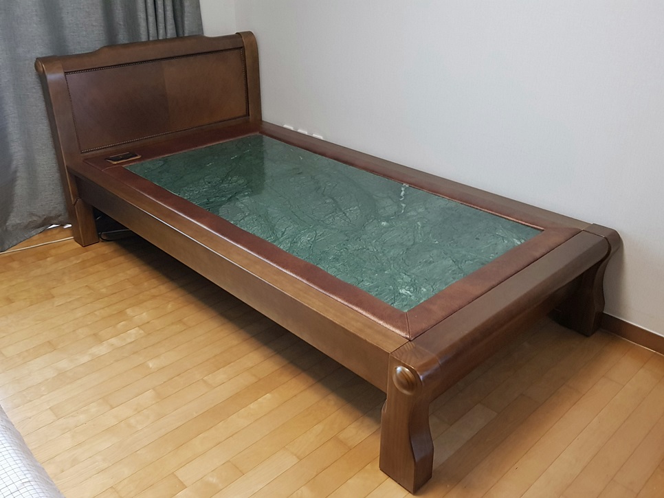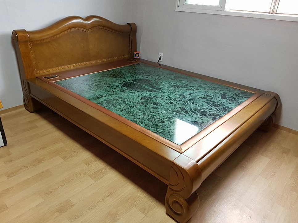 침대의 경우는 주로 짙은 색상의 원목에 청옥 설치한 사례가 많습니다.