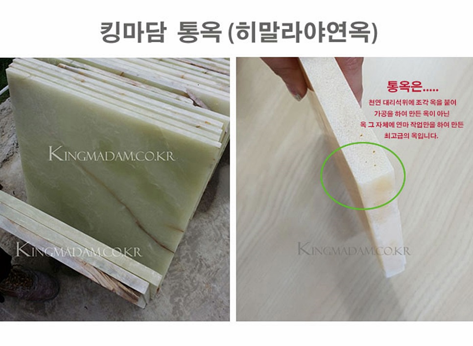 보통 옥돌이 붙힌옥 이라는것은 알고계시죠? 1.5센치의 대리석에 0.5센치의 옥을 붙혀 옥돌이라고도 합니다.