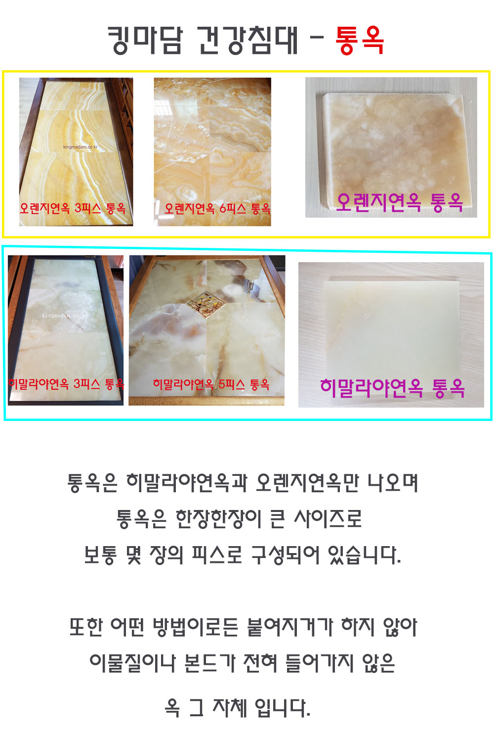 조각통옥을 이어 붙여 만든 통옥침대가 아닌 킹마담은 본드가 전혀 들어가지 않았음을 다시한번 강조드립니다.