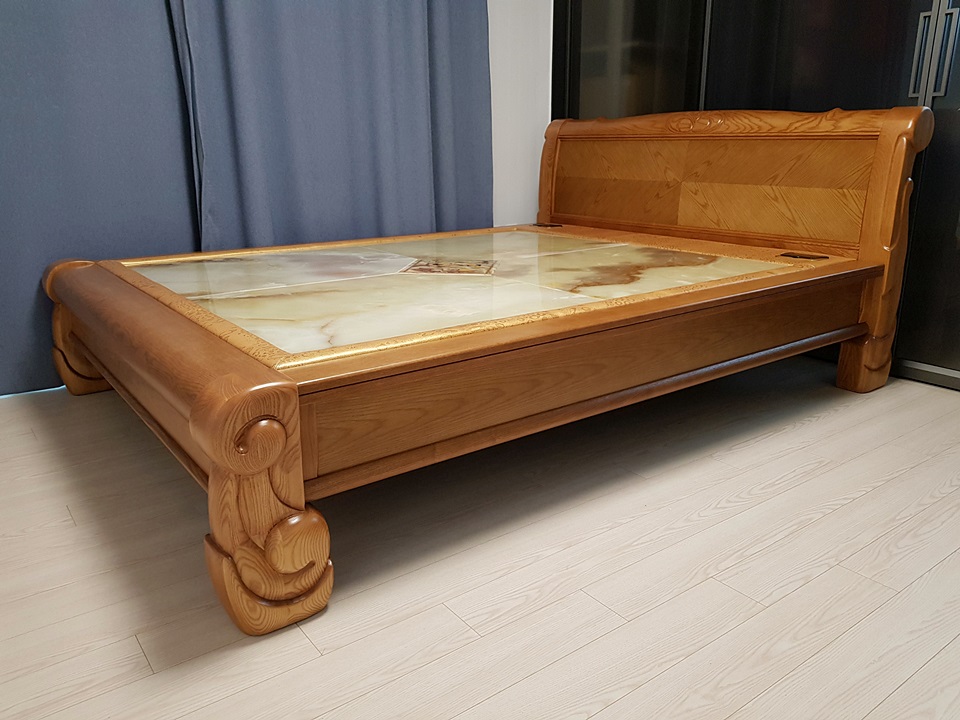 북미산 에쉬원목에 히말라야통옥이 설치되어 아주 품위있고 고급스러운 통옥침대가 완성되었습니다.