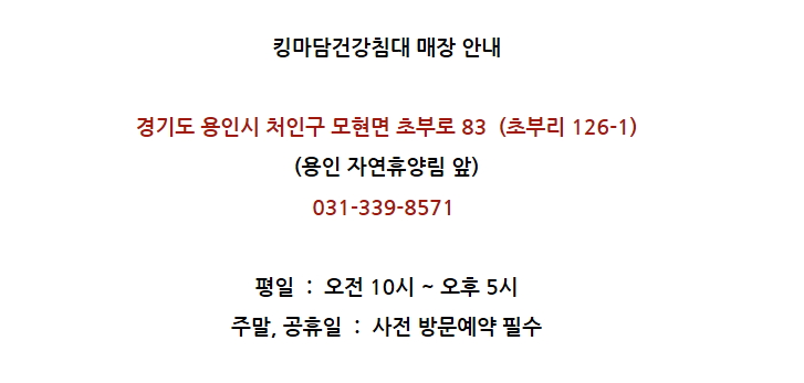 킹마담건강침대는 오프라인매장도 운영하고 있어 직접 확인해보시고 궁금하시다면 언제든 방문해주세요!