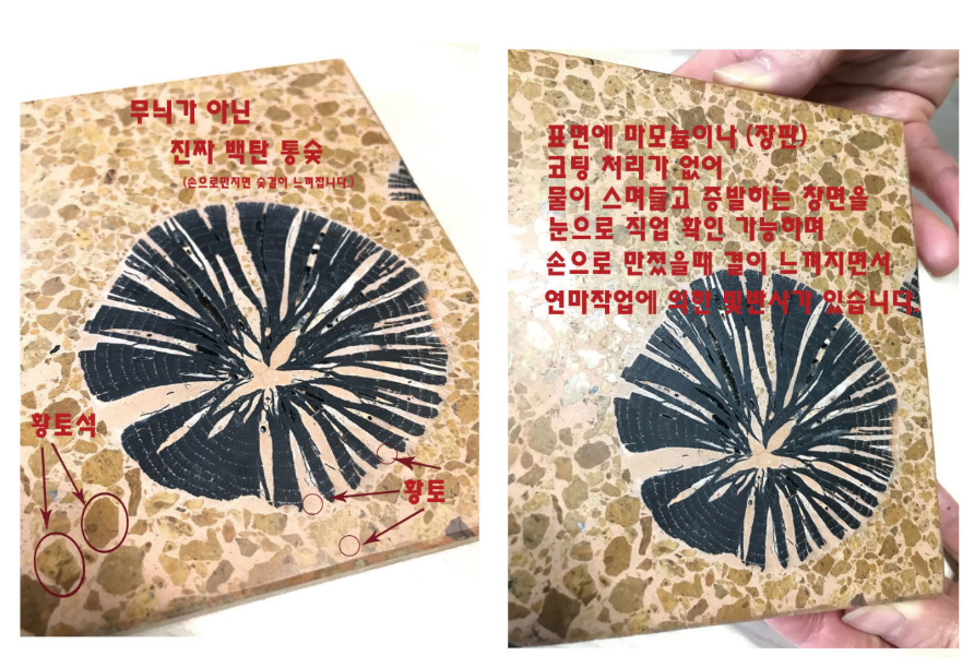 생황토 석재 안에 백탄통숯을 올려 제작 된 고급 석재 입니다.