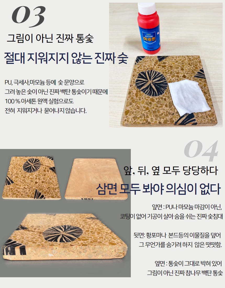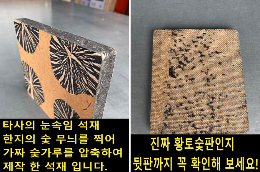 백탄통숯 석재 를 만들면서 접착제나 장판 같은 것들을 붙이지 않고 연마작업만을 하여 만들어져