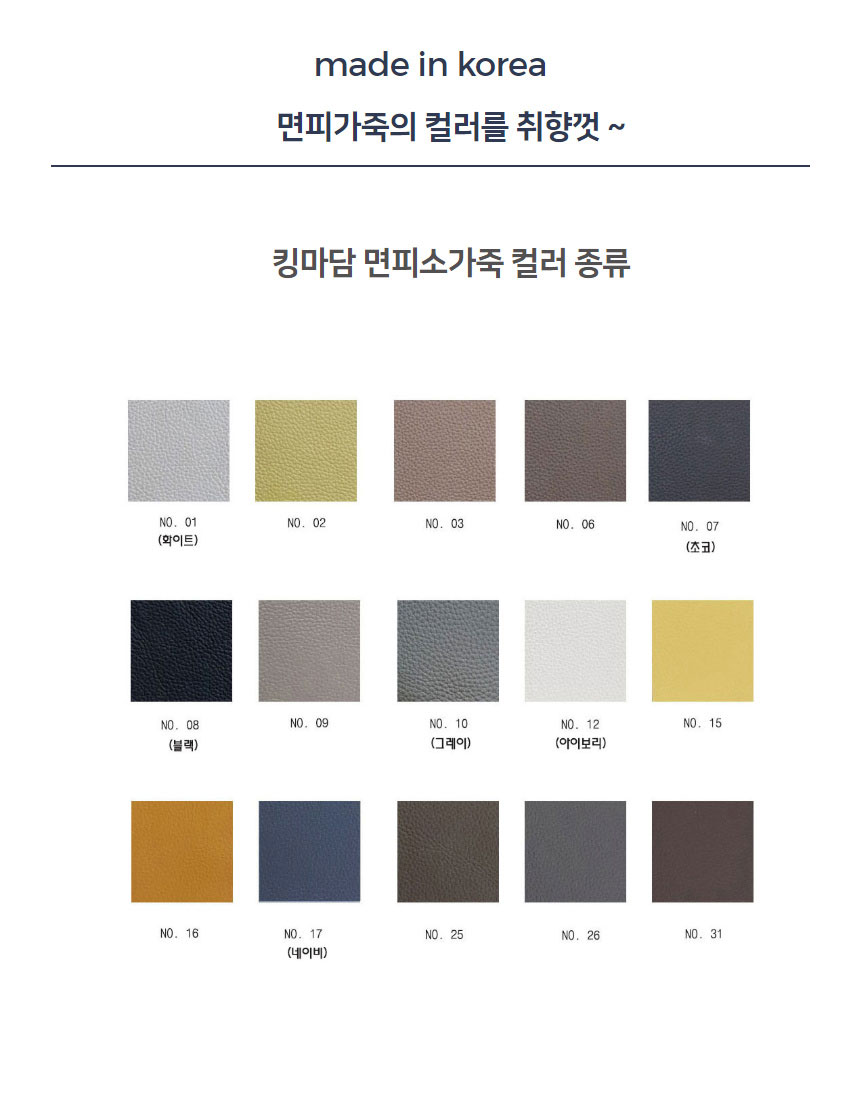 면피가죽은 색상들이 다양하여 선택의 폭이 넓습니다.