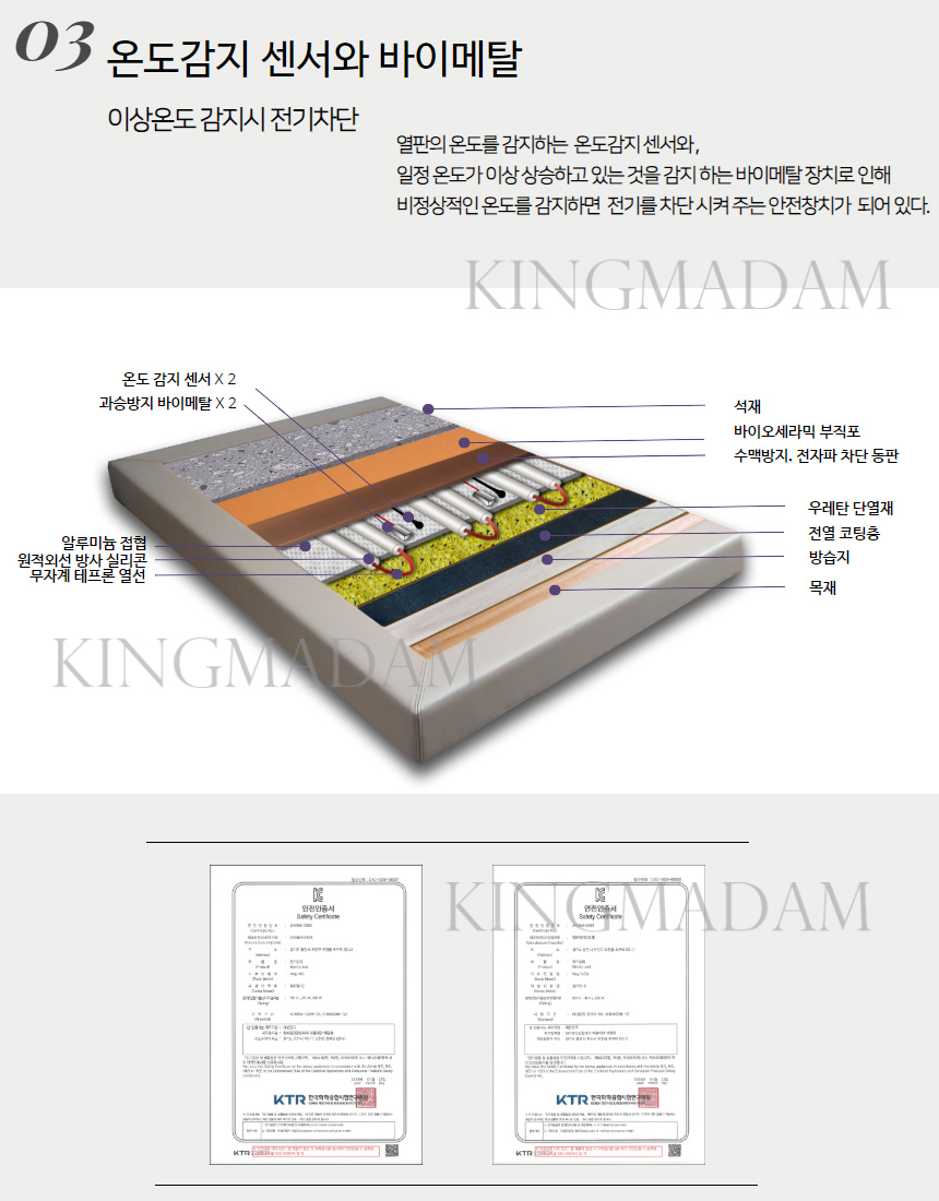 보료안에 들어가는 열선은 무자계열선과 이중차단을 위해 EMI 시스템을 추가로 장착 하였으며
