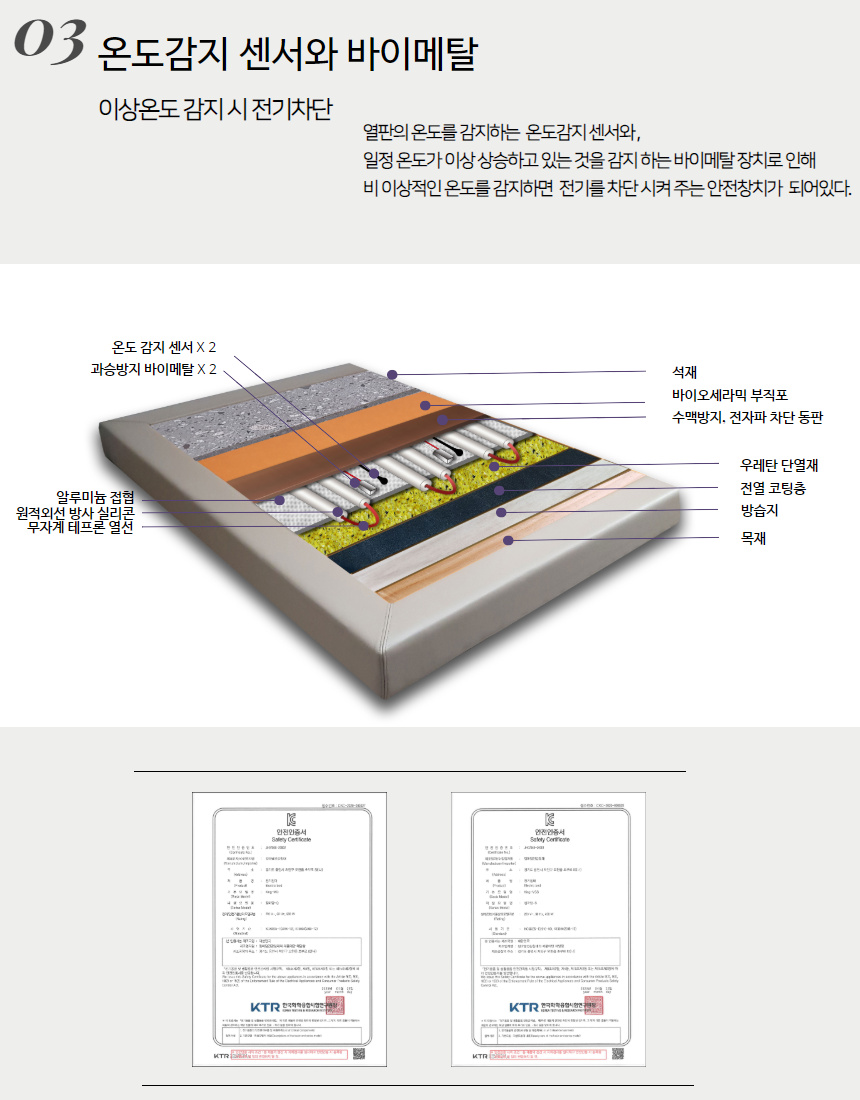 보료 안에 들어가는 열선을 무자계열선을 쓰며 이중차단을 위한 EMI 시스템을 함께 넣어