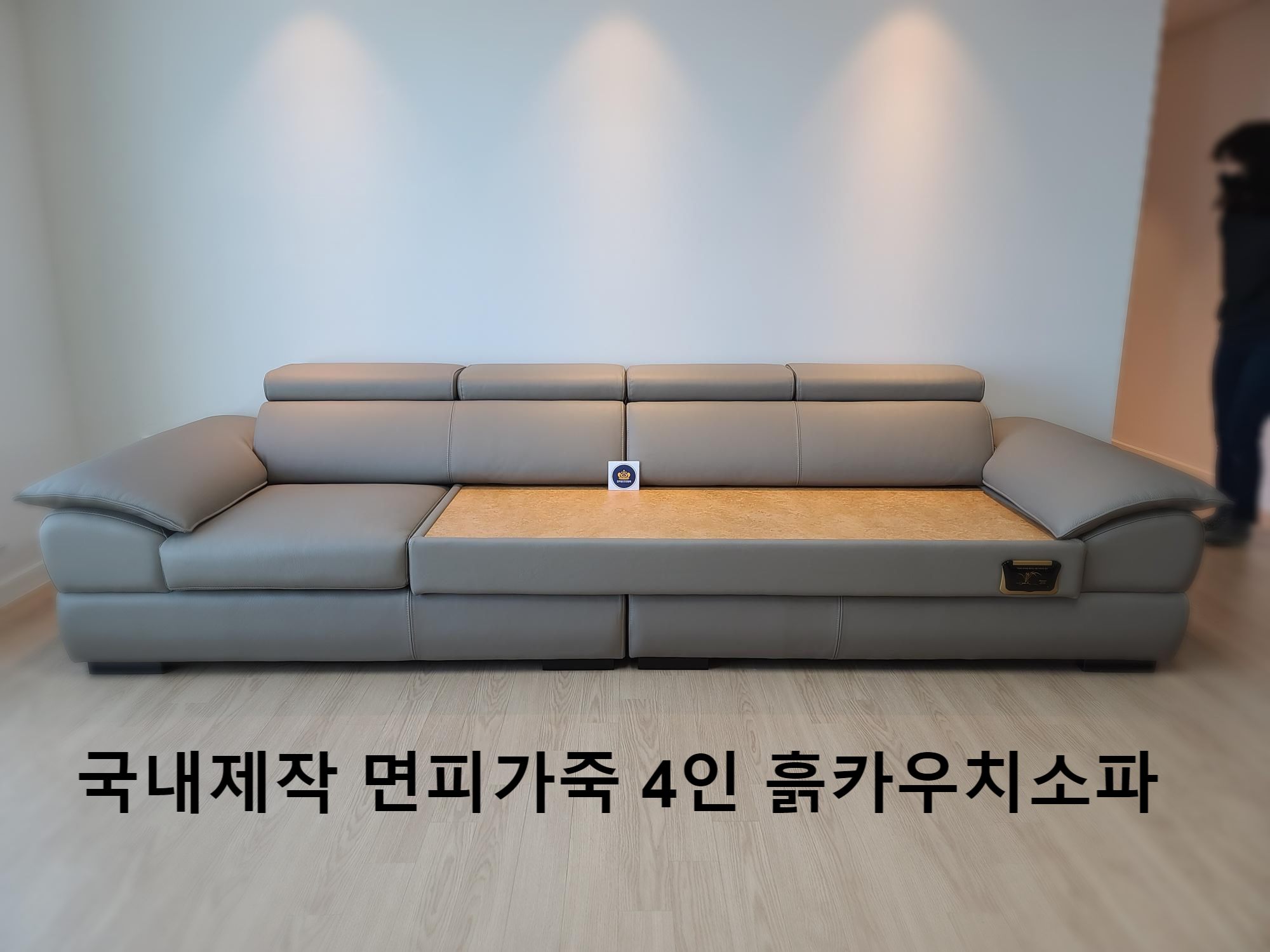 국내에서 맞춤제작 되는 4인 면피가죽 카우치흙소파