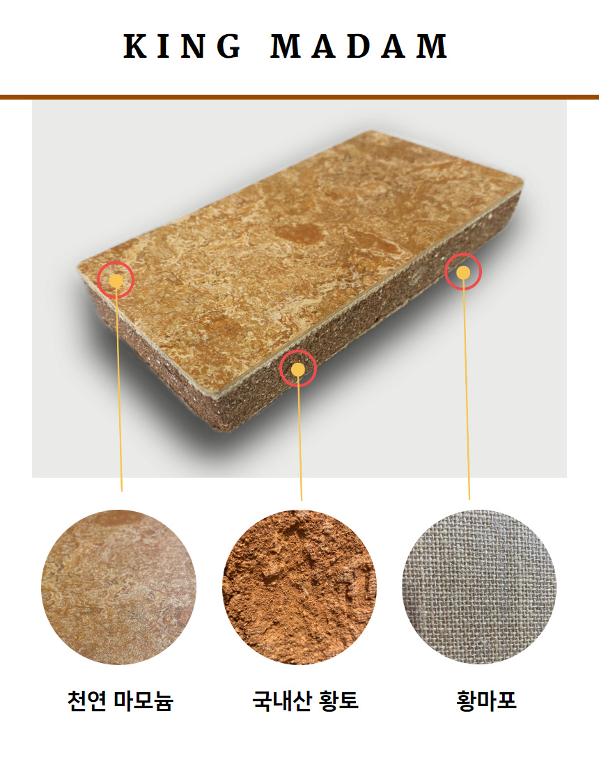 킹마담의 일반 흙판은 국산 황토흙으로 제작이 되며