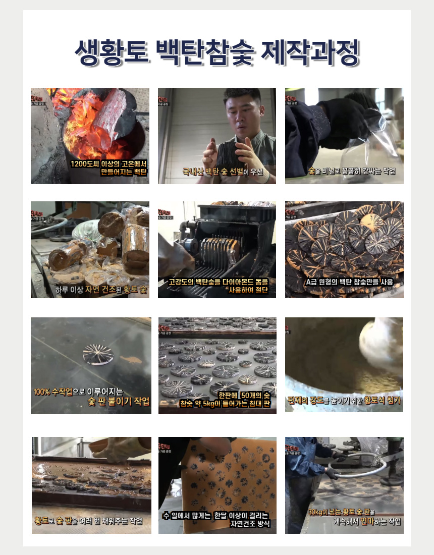 진짜 국산 황토가루와 결집력과 열 전도율을 높일 황토석 알갱이, 백탄통숯이 함께 들어가
