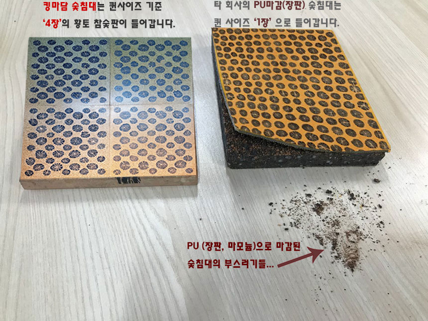 타사에서는 이걸 따라 제작한 PU마모늄 장판 위에 숯그림을 찍어 숯가루를 안에 압축 후 숯침대나 숯쇼파로
