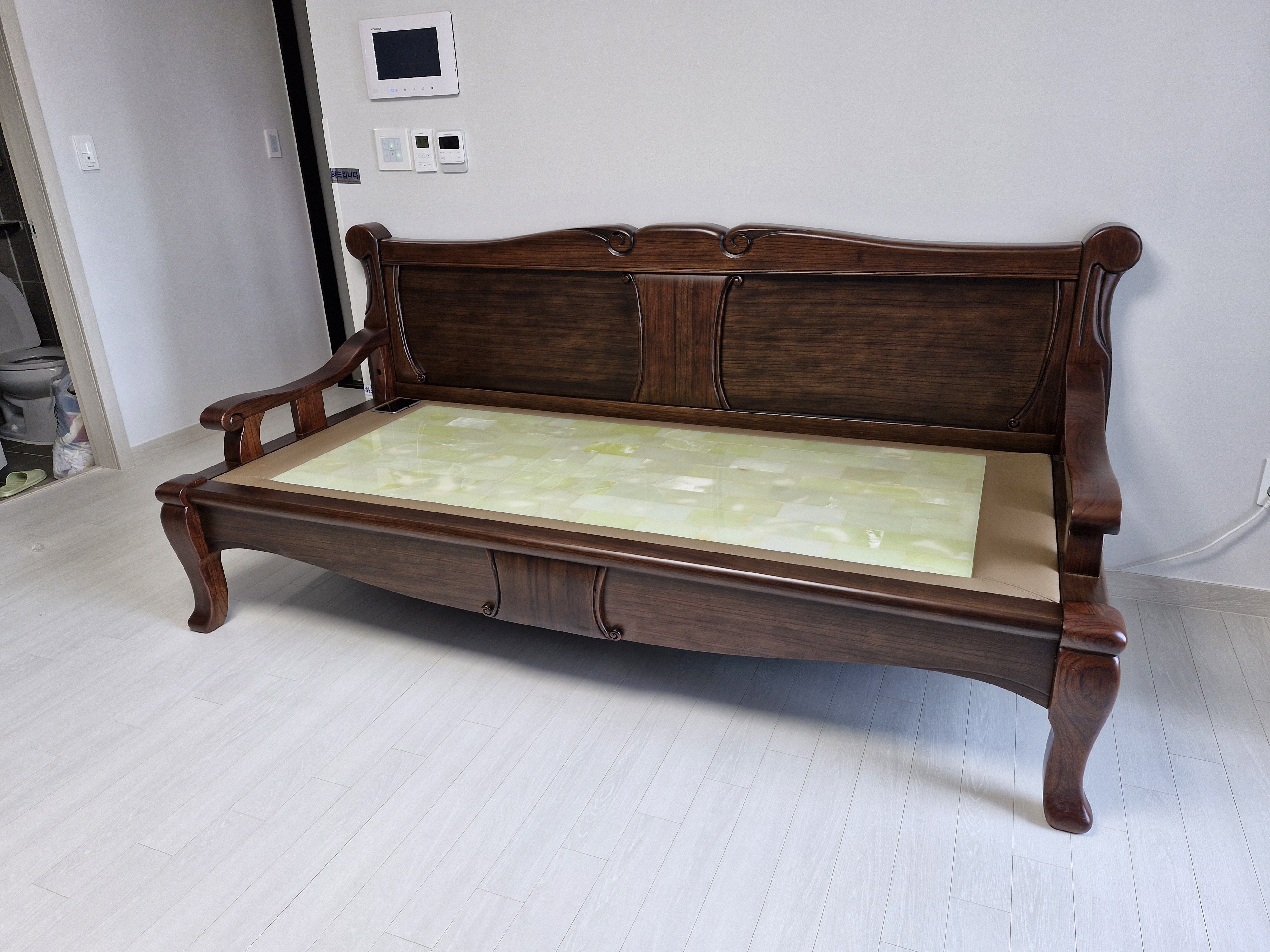 원목 프레임에 히말라야연옥을 올려 옥쇼파로 설치해드렸습니다.