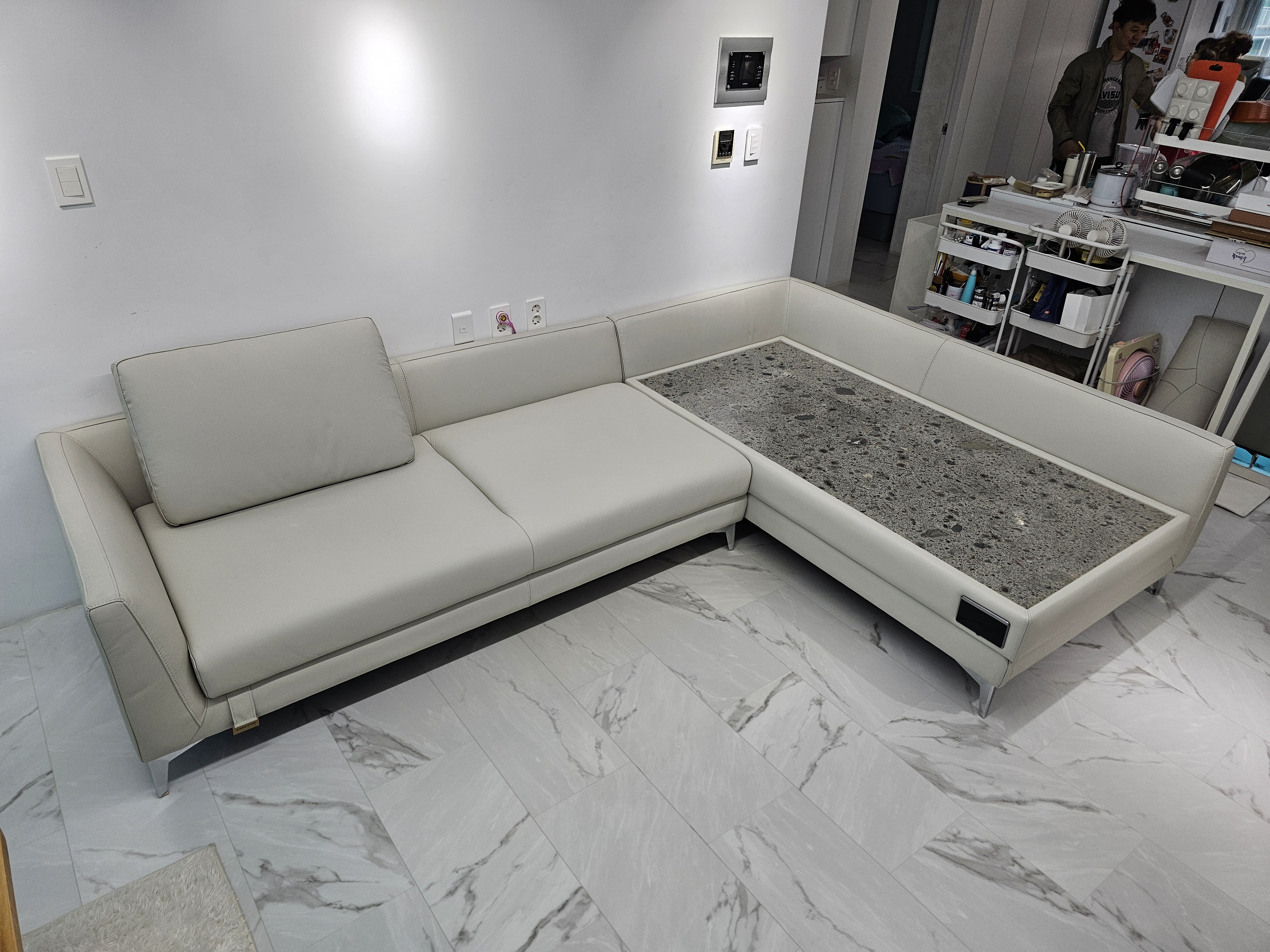 카우치의 경우 기본이 ㄱ자형이라면 한쪽에만 돌이 한장 올라가는데요