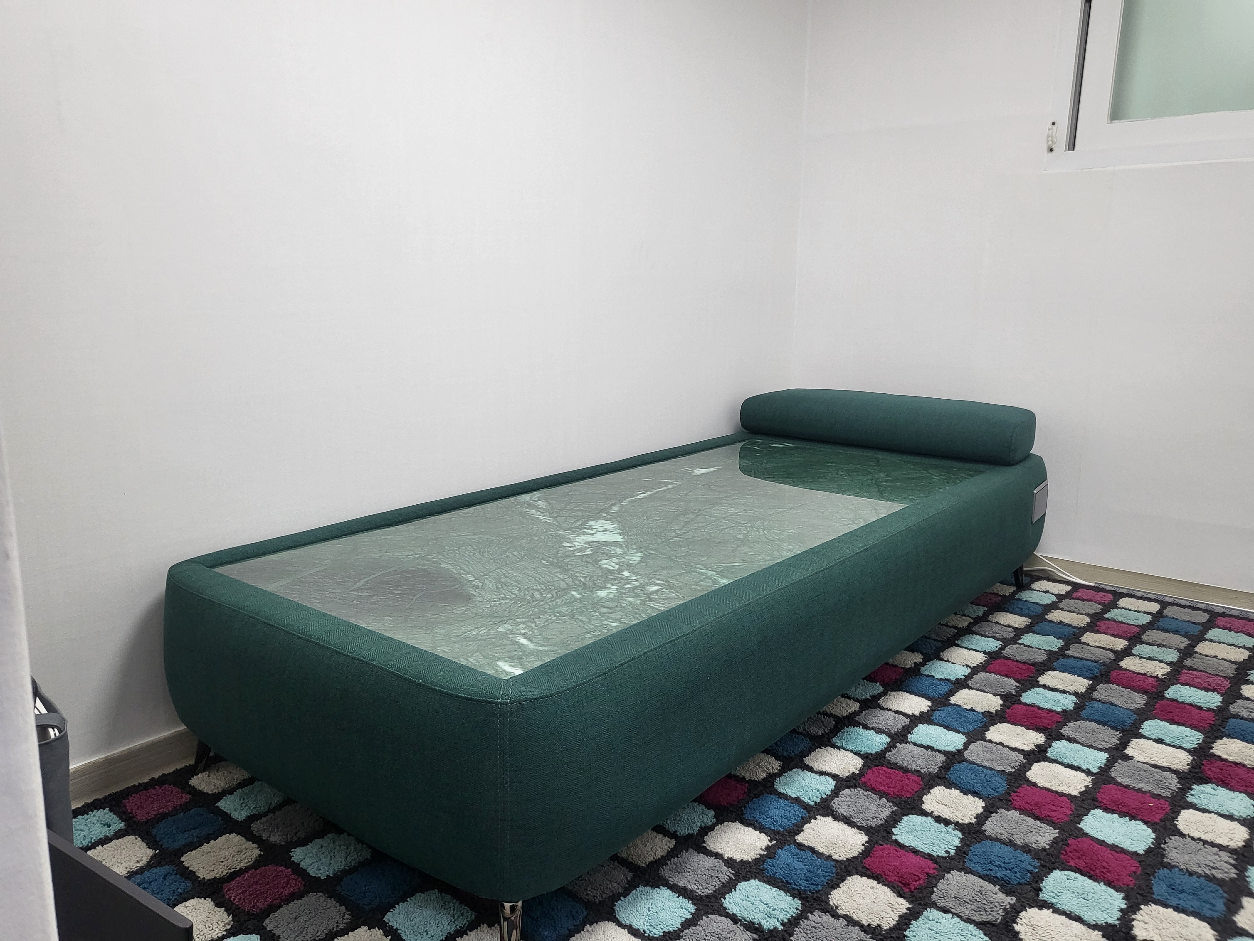 패셔너블한 그린빛의 돌침대쇼파로 제작되었습니다.