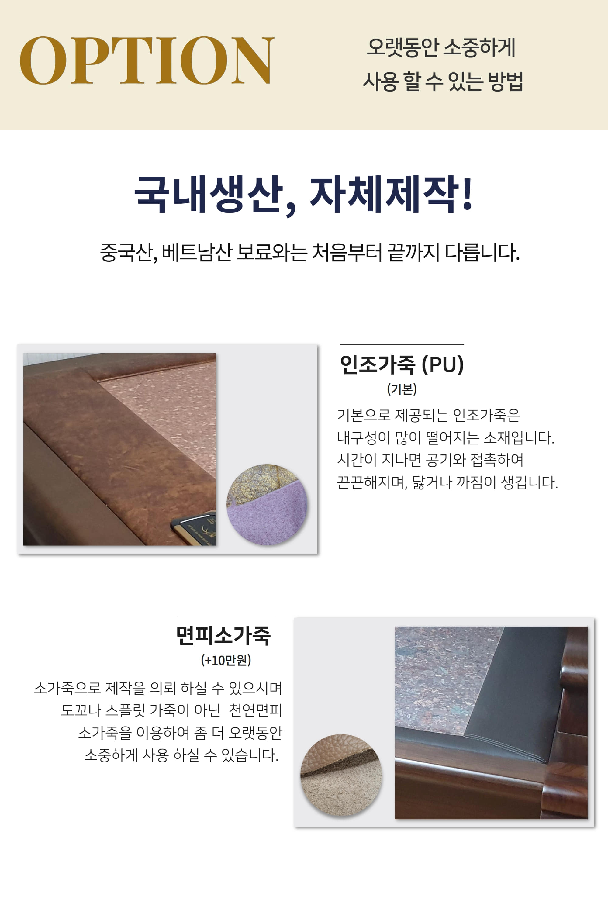 울산에 설치해드렸구요~ 면피가죽 03번에 베이지 황토를 올려 전체적으로 세련된 베이지 브라운 컬러로 제작되었습니다.